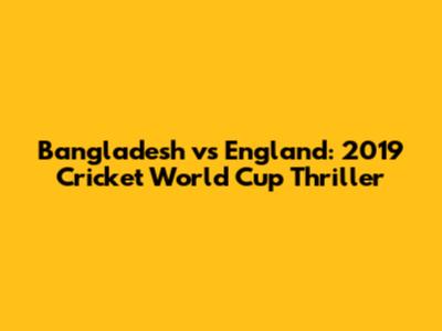 Bangladesh Vs England: 2019 Cricket World Cup Thriller