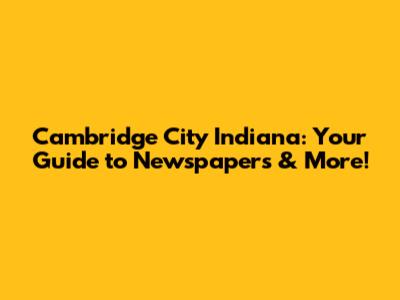 Cambridge City Indiana: Your Guide To Newspapers & More!