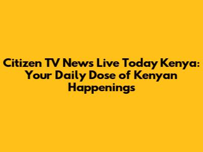Hey guys! Ever feel like you're missing out on what's happening in Kenya? Well, Citizen TV News Live Today Kenya is your go-to spot to catch all the latest updates as they unfold. Whether it's breaking news, political drama, economic shifts, or vibrant cultural events, Citizen TV brings it straight to your screen. We're talking about real-time reporting, passionate journalists on the ground, and a commitment to delivering the news that matters most to Kenyans. Think of it as your front-row seat to the nation's pulse. We dive deep into the stories, providing context, analysis, and perspectives that help you understand the bigger picture. From the bustling streets of Nairobi to the serene landscapes of the North, no corner of Kenya is left uncovered. Our team works tirelessly to ensure you get accurate, timely, and engaging news content. So, grab your popcorn, settle in, and let's explore the dynamic world of Kenyan news together. We'll be covering everything from major government announcements to the everyday triumphs and challenges faced by ordinary Kenyans. Get ready for insightful interviews, compelling features, and the kind of reporting that keeps you informed and connected. This isn't just news; it's the story of Kenya, unfolding live.