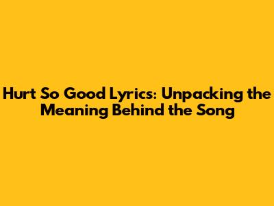 Decoding the Meaning: What is "Hurt So Good" Really About?