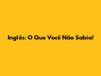 Inglês: O Que Você Não Sabia!