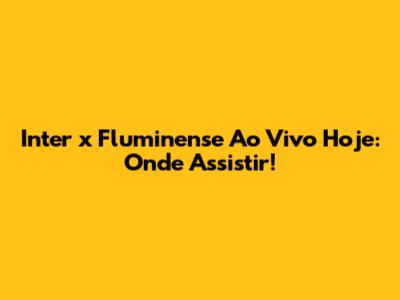 Inter X Fluminense Ao Vivo Hoje: Onde Assistir!