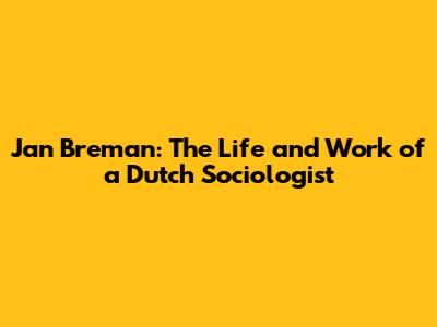 Jan Breman: The Life And Work Of A Dutch Sociologist