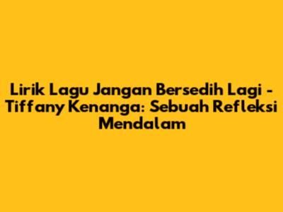 Hey, guys! Siapa di sini yang lagi butuh sandaran hati atau sekadar pengingat lembut untuk bangkit? Lagu "Jangan Bersedih Lagi" dari Tiffany Kenanga ini kayaknya pas banget buat kalian. Lagu ini bukan sekadar kumpulan lirik, tapi lebih kayak pelukan hangat di saat-saat terpuruk. Yuk, kita bedah bareng-barem arti dan pesan yang tersimpan di dalamnya, biar kita semua makin kuat dan nggak gampang nyerah.