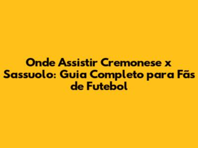 Onde Assistir Cremonese X Sassuolo: Guia Completo