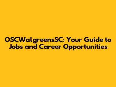 OSCWalgreensSC: Your Guide To Jobs And Career Opportunities