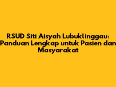 RSUD Siti Aisyah Lubuklinggau merupakan rumah sakit yang berdedikasi untuk memberikan pelayanan kesehatan terbaik bagi masyarakat Lubuklinggau. Dengan layanan yang lengkap, fasilitas yang memadai, dan tenaga medis yang profesional, rumah sakit ini siap menjadi mitra kesehatan Anda dan keluarga. Informasi yang kami berikan ini diharapkan dapat memberikan gambaran yang jelas mengenai profil, layanan, dan informasi penting lainnya tentang RSUD Siti Aisyah Lubuklinggau. Kami harap panduan ini bermanfaat bagi Anda yang membutuhkan informasi seputar rumah sakit ini.