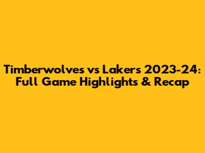 Timberwolves Vs Lakers 2023-24: Full Game Highlights & Recap
