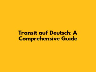 Transit In German: A Comprehensive Guide