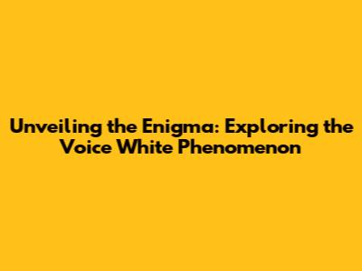 Unveiling The Enigma: Exploring The Voice White Phenomenon